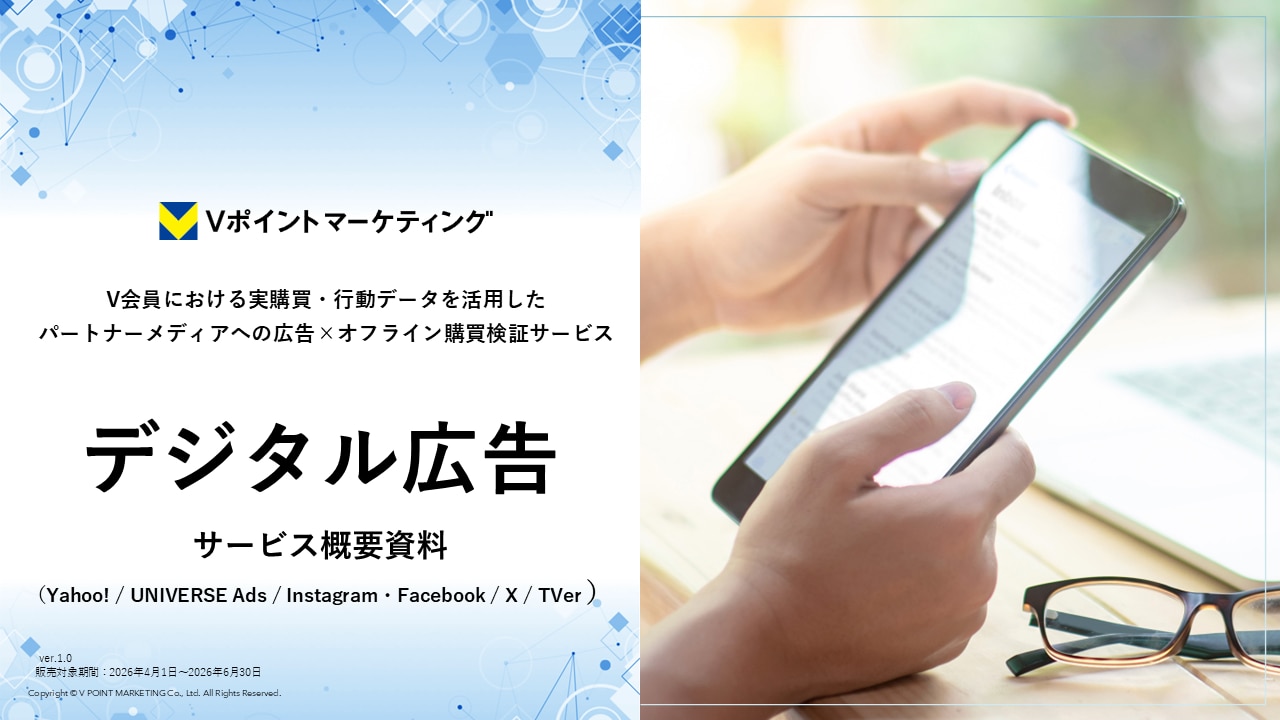 約1.3億人(有効ID数)のV会員の購買・行動データを活用した、Yahoo広告やUNIVERSE Adsなどの外部連携メディアの媒体資料です。